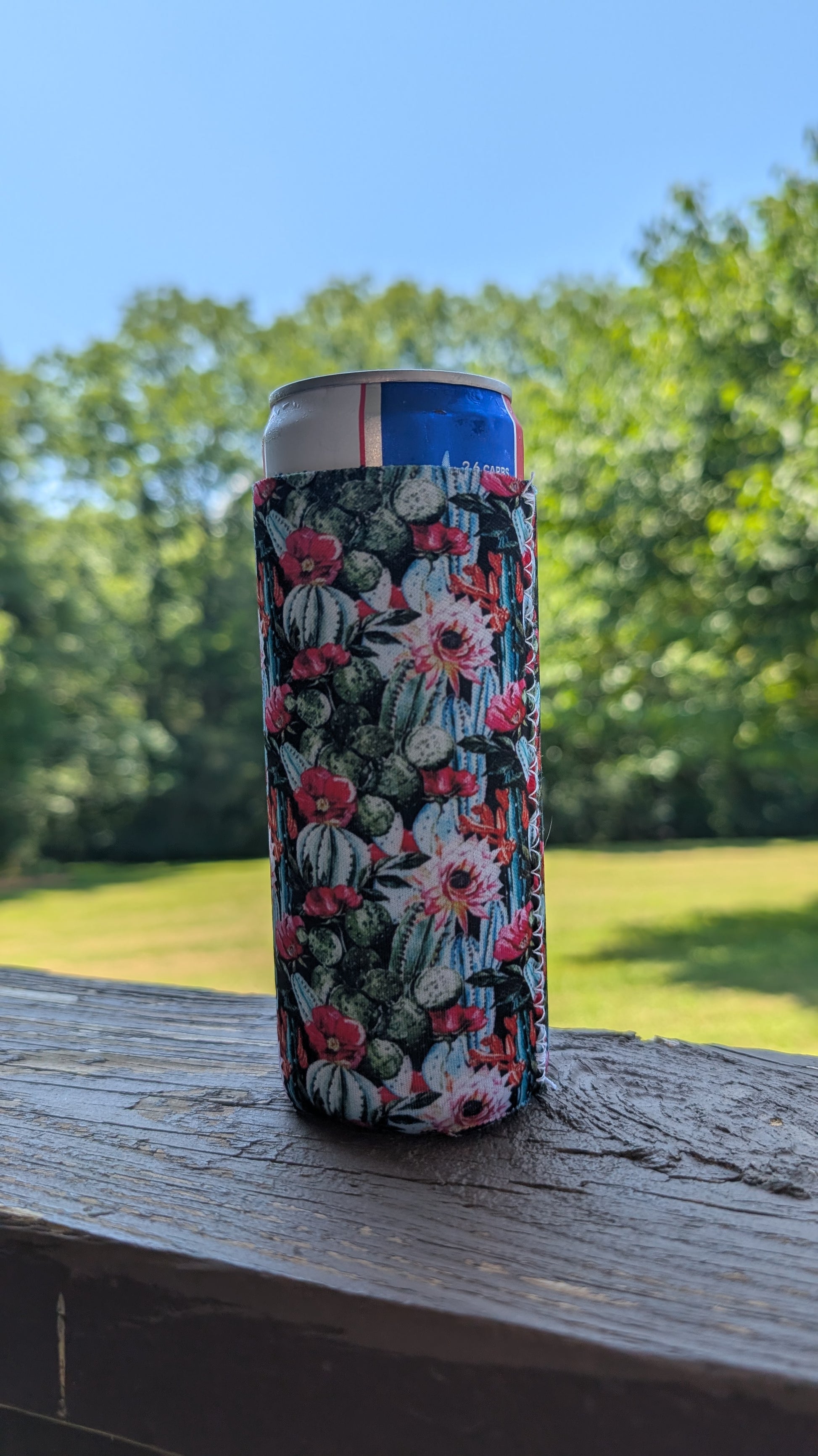 Floral Cactus Succulent Neoprene Slim Can Koozie