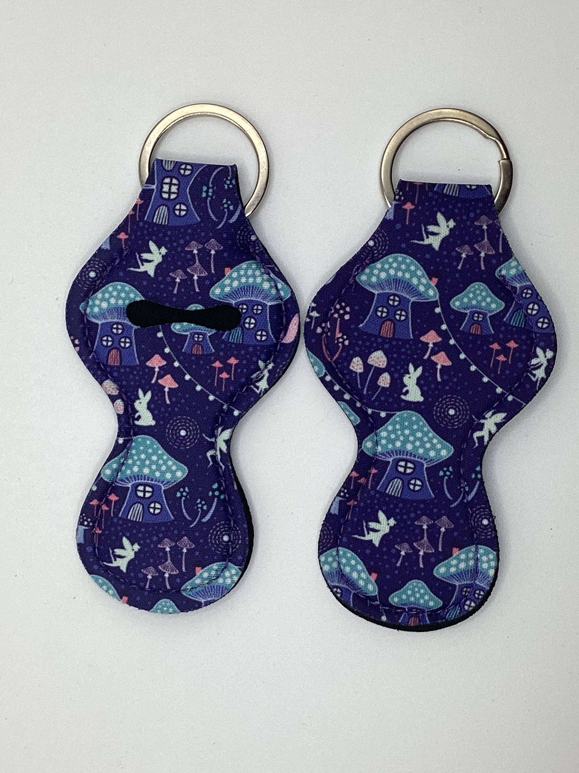 Secret Garden, Mushroom, Bunny, Fairy Tale, Neoprene Chapstick Holder Keychain