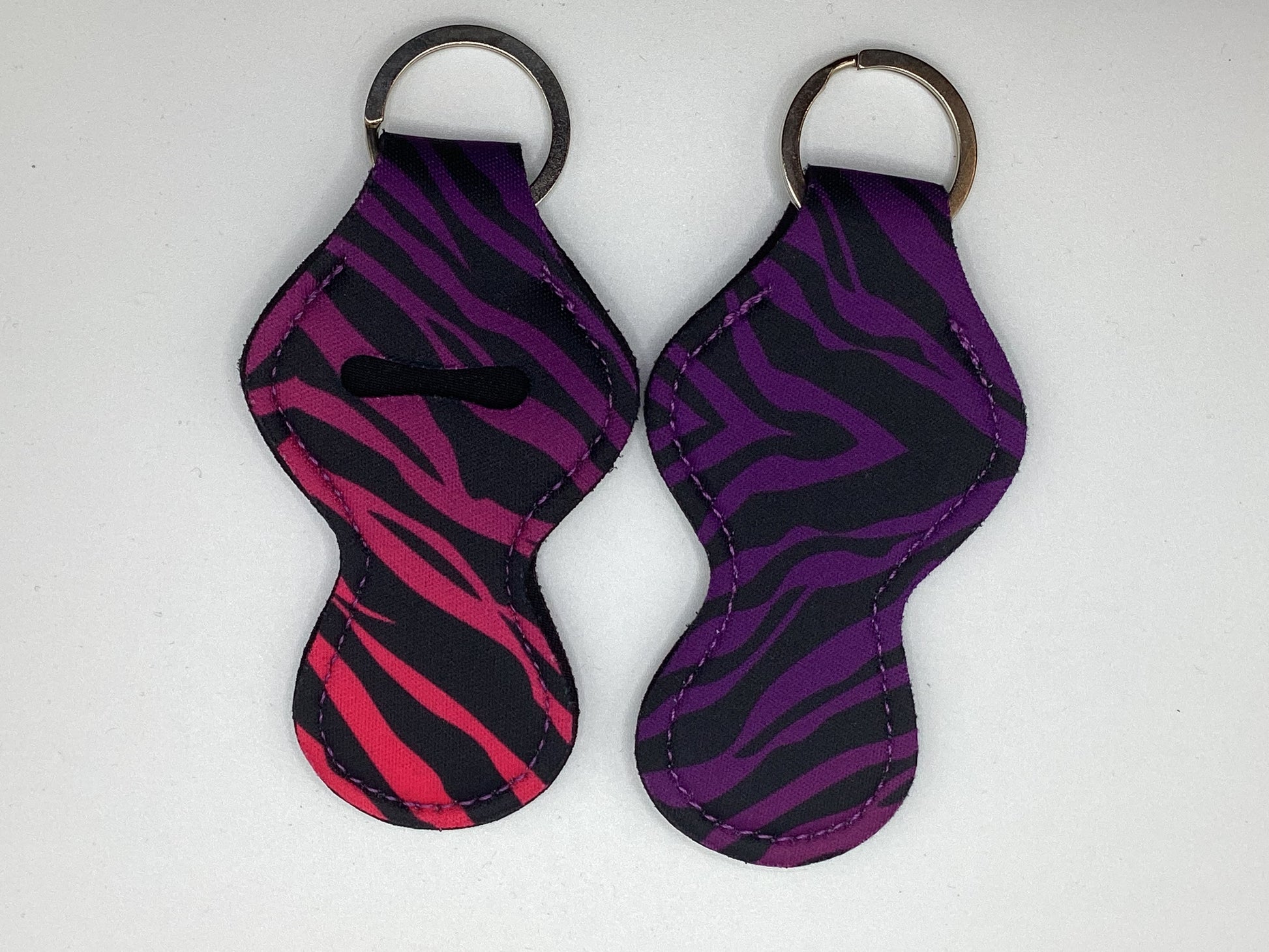 Pink and Purple Zebra Stripe Neoprene Chapstick Holder Keychain