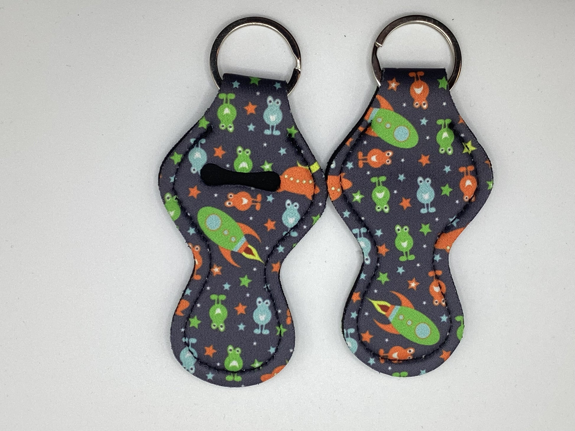 Alien, UFO, Rockets, Neoprene Chapstick Holder Keychain