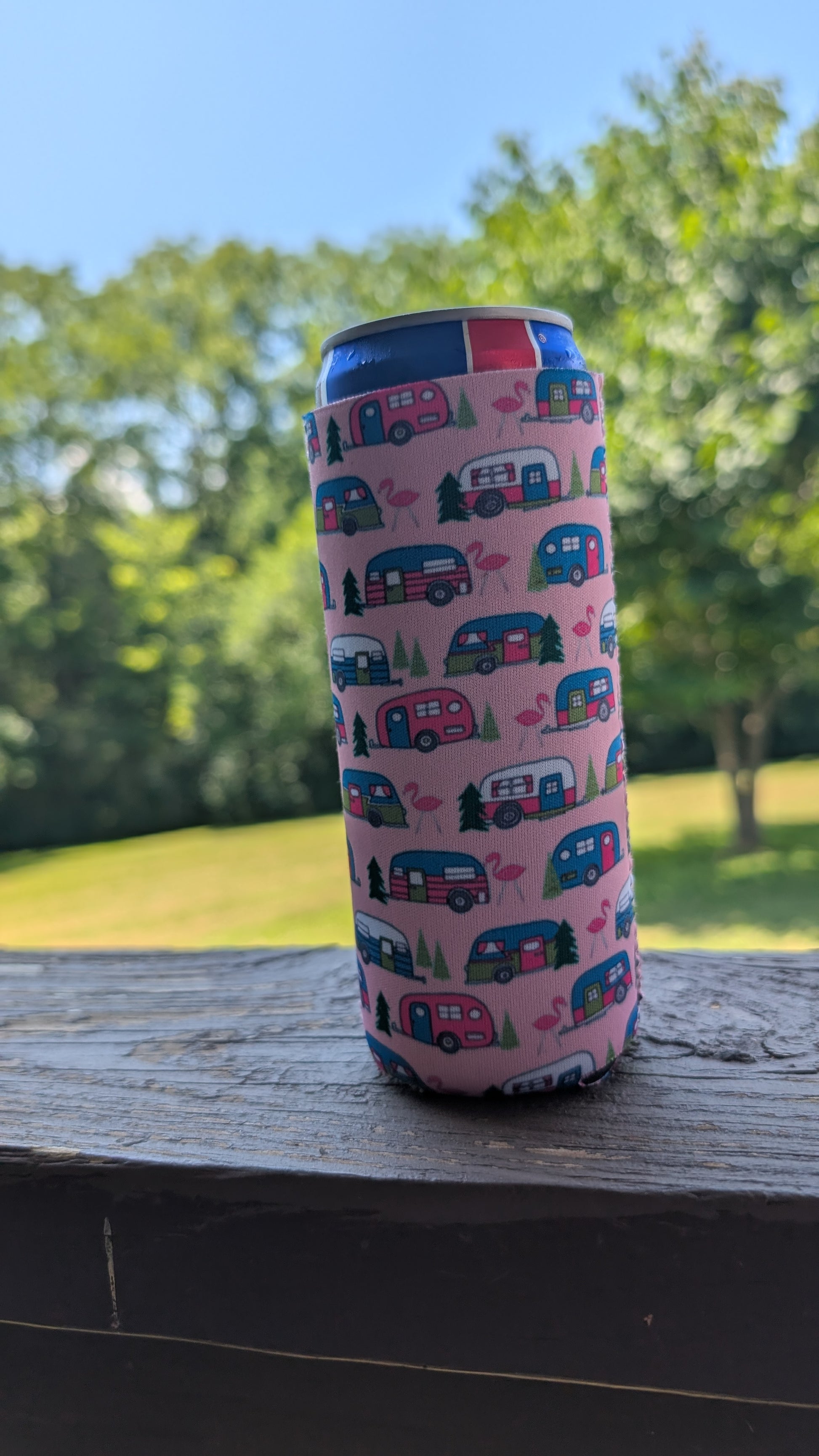 Pink Camper Neoprene Slim Can Koozie