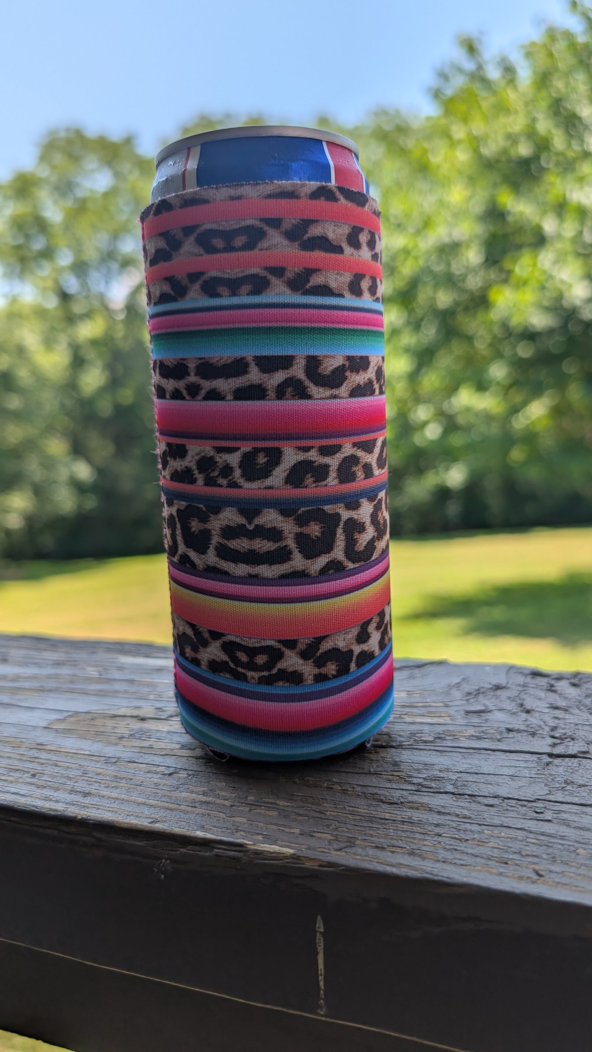 Serape Leopard Stripe Neoprene Slim Can Koozie